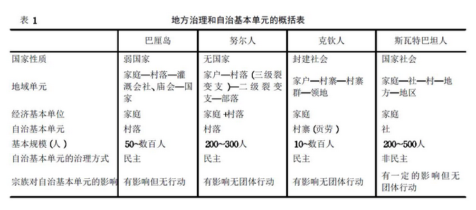 与政治学家研究的国家、城邦不同,历史学家和人类学家则对部落、传统村落的研究比较细致,考察过基层社会不同的治理单元:部落、村庄、村落、家庭及其氏族等。