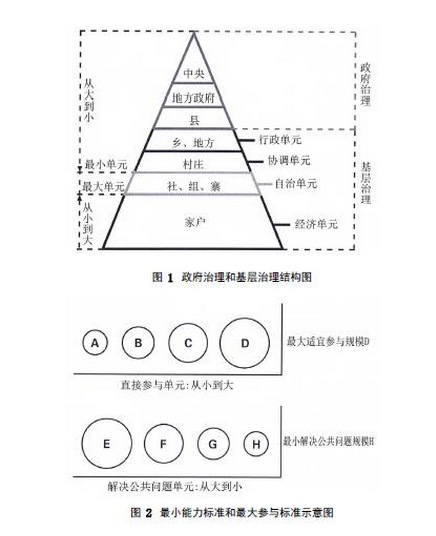 结合对自治基本单元概念和特点的分析,可以进一步刻画农村基层自治的基本单元:一是基本单元是农民能够直接参与的最大单元,如文后图2的D。二是基本单元是从上至下能够解决公共问题的最小单元,如文后图2的H。基本单元的规模是处于直接参与的最大单元D和解决公共问题的最小单元H之间。简言之,基层自治的基本单元位于靠近家户的公共单元,它是人们在生产、生活、交往中长期磨合而自然形成的。