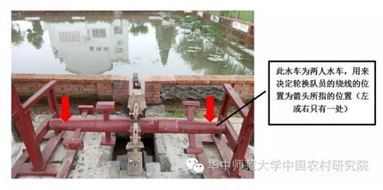 水车是抢水的工具。老人说水车有大小,用什么水车因田而定。一般有2人、4人、6人的水车,田块大的话就用大水车,田块小的话就用小水车。