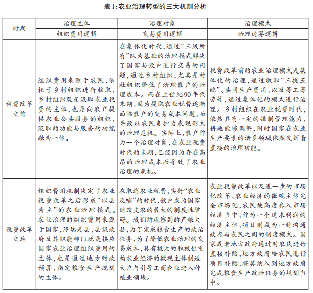 大体而言,自农村改革以来,尤其是税费改革以来的农业治理转型包括以下三层逻辑。