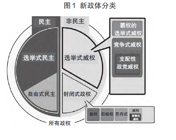 至此,谢德勒完成了他对熊彼得选举概念的系统再造。不过,他的“贡献”远不止于此。经由选举概念的修正,谢德勒同时建构了一个由自由民主、选举民主、选举威权和封闭式威权组成的新政体分类。在这一分类中,民主政体由自由民主和选举民主两部分构成;相应地,威权政体也由两部分构成:一部分是在第三波民主化浪潮中诞生的选举威权(根据选举竞争程度的不同,复可区分为不同的亚类型);一部分是没有经历第三波民主化的传统威权——如今获得了“封闭型威权”的新名号。中国台湾学者寇健文在一篇学术综述的论文中,对于新的政体分类做出了如下的概括: