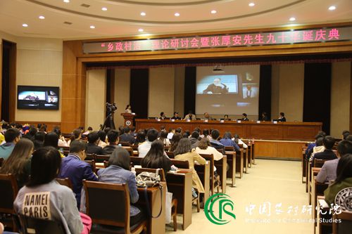 随后,邓大才教授在介绍张厚安先生学术思想的发言中首先回顾了张厚安先生的学术生涯,并将其归结为三大贡献:一是重铸了政治学科,率先开设政治学课程;二是创建了中国农村研究机构,率先开展中国农村问题调查;三是确立“理论务农”的思想理念,指明了中心的发展方向。邓大才教授详细介绍了张厚安教授的“三个面向,三个结合,三个服务”理论思想。三个面向,是面向社会,面向基层,面向农村;三个结合是与农村的改革实践相结合,与政府的决策相结合,与研究生的培养任务相结合;三个服务是为农村改革服务,为政府决策服务,为培养合格的人才服务。最后,邓大才教授对张厚安先生为中国农村研究以及中国农村研究院做出的理论指导与贡献表示崇高的敬意与衷心的感谢。